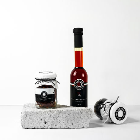 Ürün çeşitliliğimiz, doğal tarım ve soğuk sıkım yöntemleriyle üretilen natürel zeytinyağlarımızın yanı sıra baharatlı ve aromalı zeytinyağlarımız, soslarımız ve kahvaltılıklarımızdan oluşuyor.